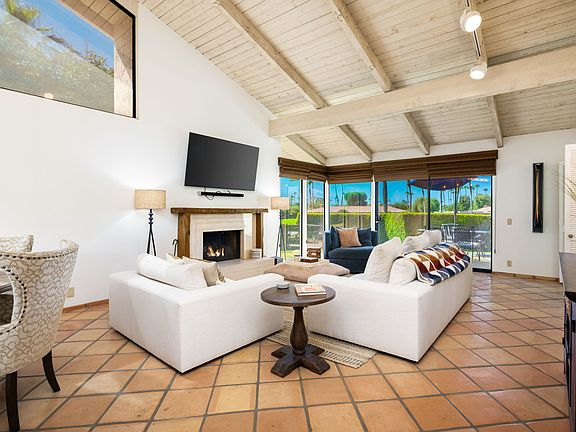 Available for Lease Dec 2025 & Jan. 2026 for $4500 per month. Leased Feb through April 2026. Welcome to this charming 3-bedroom, 3-bath home nestled in Mountain Cove of Indian Wells where the Mountains provide a stunning backdrop. As you enter through the private courtyard patio, you'll immediately feel the warmth and charm. The interior features wood beam ceilings and a wall of windows looking out to the views offering loads of natural light. The Saltillo tile flooring adds a touch of rustic elegance complemented by a cozy wood-burning fireplace, a flat-screen TV & blinds for added privacy. The Chef's Kitchen is a culinary delight with Quartz Counters, equipped with Stainless Steel Appliances including a Wolf Gas Stove. Sliders from the Kitchen out to the Patio where you have a Gas BBQ. The Primary bedroom features a king-sized bed, plantation shutters, TV and an en-suite bathroom with a glass-enclosed tiled shower, dual vanities, and a generous walk-in closet. The 2nd Guest room includes a Queen bed with its own en-suite bath ~ a private retreat for visitors. The versatile 3rd Guest room/office boasts a Queen pullout sofa, a desk, Wet bar with an Ice maker, and en-suite bath, making it perfect for guests or as a home office. A two-car garage complete the home. Step out to your private patio and enjoy al fresco dining while taking in breathtaking sunsets. Enjoy the community pool just steps from your back patio. Minutes to BNP Paribas Tennis Open, Indian Wells Golf Resort and El Paseo for Shopping and Dining options.