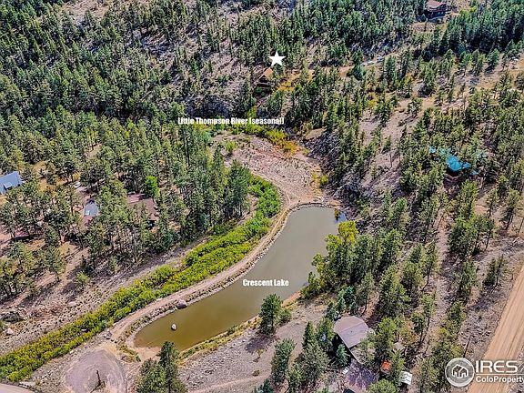 Bring your imagination and your mountain home dreams to this beautiful 20-acre slice of heaven in desirable Pinewood Springs neighborhood. Located in a quiet and private location at the end of the road, this property feels like your own private oasis. With almost 1,000 feet of the seasonal Little Thompson River running along the property and great views of Roosevelt National Forest, which you can directly access from your backyard. this is truly a sanctuary for you and local wildlife. Enjoy countless varieties of birds, elk, deer, bear and other wildlife who make this area their home. Bring your toolbelt and renovate/repair the 2-bed cabin or remove it and build your dream home using the existing infrastructure including connection to Pinewood water and septic system. Wonderful neighborhood is home to the Colorado Cherry Company and enjoys a tightknit community with a fun social network for those who want to participate. Ideal location only 10 minutes from downtown Lyons, 30 minutes to Boulder and Longmont and 20 minutes to Estes Park. Roads and water system are maintained by county tax districts. Well-trained volunteer fire department with newer station located just down the hill. NO HOA. Easy access to Highway 36 (prioritized by CDOT in winter for snow removal).