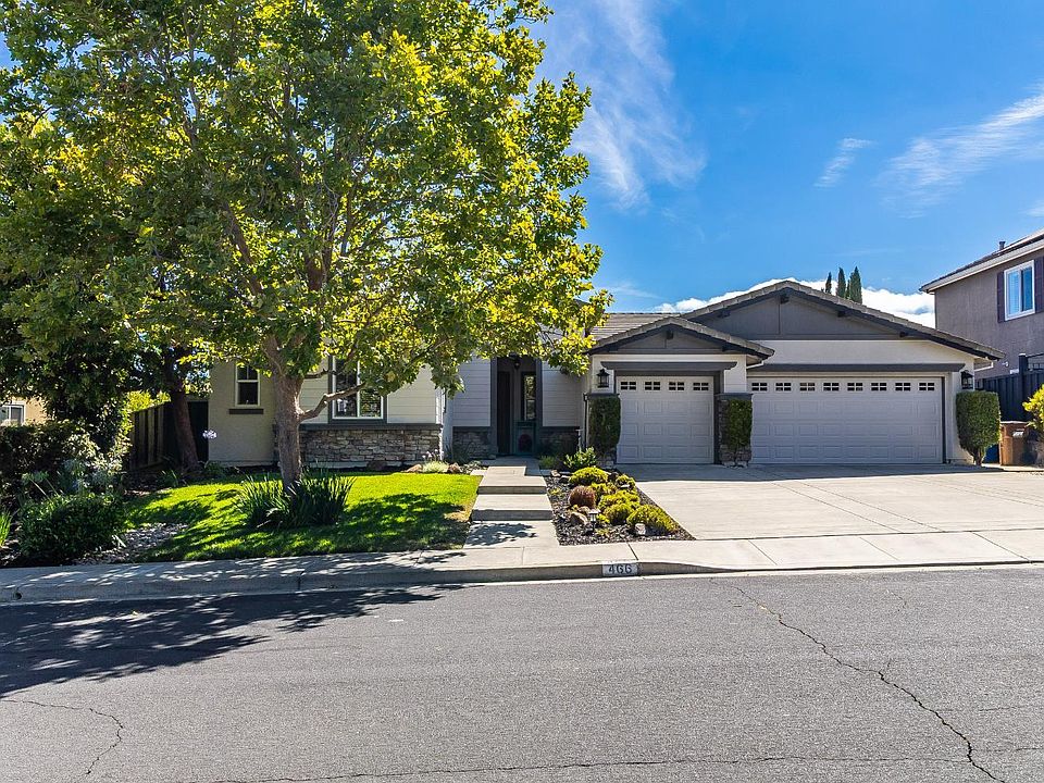 Elegant single-level residence in Benicia's Waters End neighborhood, offering serene valley views and a seamless blend of comfort and style. A welcoming private entrance sets the tone for the thoughtfully designed layout, while expansive rear windows illuminate the home with natural light and frame picturesque rolling hills. Perfect for both everyday living and refined entertaining, this 4-bedroom, 3-bathroom home features formal and casual living areas, a formal dining room, an eat-in kitchen, and a versatile flex room with French doors, perfect as a 5th bedroom or home office. The chef's kitchen is a showstopper with stainless steel appliances: gas cooktop with hood, double ovens, built-in fridge and microwave. An oversized island, pantry, and tons of cabinetry for storing every small appliance, air fryer, and Instant Pot you've ever loved with space to spare. Additional highlights include a paid-off solar system, 3-car garage, and a thoughtfully designed utility room that functions as both a laundry space and a stylish drop zone. The beautifully landscaped backyard features a covered patio, perfect for entertaining or simply relaxing while you watch the sun set behind the hills. With no rear neighbors and close proximity to trails, parks, and schools, this is luxury living.