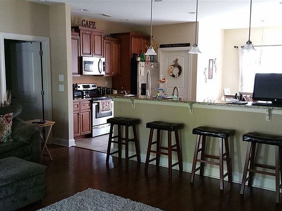 Beautiful 3 bed, 2 bath condo with granite countertops, stainless steal appliances, tile in kitchen, laundry, and both baths, hardwoods in great room, screened in porch, fire place, tray ceilings in great room and master bedroom, back patio, beautiful landscaping and private back yard backs up to wooded area.