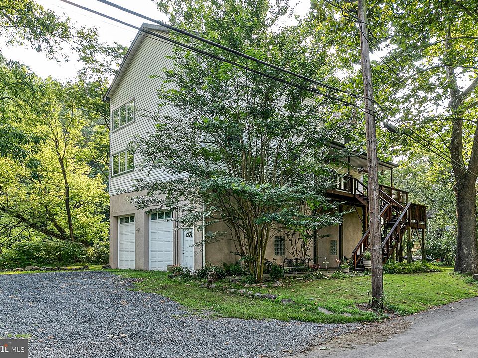 Who needs a vacation property when you can live in this lovely, historic home overlooking Neshaminy Creek? This beautiful home is no cookie-cutter, center hall Colonial! Years ago, previous owners raised the entire house to provide protection from the creek, and the result is a home with a tree-house feel and gorgeous views into the crystal-clear Neshaminy waters. To top it off, the house is situated on a rise in the land that means the foundation remains dry. Three bedrooms, 2.5 baths, updated kitchen with honey tone cabinetry and tumble tile backsplash and tiled butler pantry with vegetable sink. Notice the authentic wide plank pumpkin pine floors, Bucks County stone fireplace, lots of natural light and breathtaking views from every room. The entire first level is a cavernous garage /storage area, perfect for weekend DIY warriors or a home-based business! Two decks provide plenty of outdoor space for grilling, entertaining friends, sunset watching and wildlife viewing, as herons and deer gather at the banks of the creek. The picturesque property is situated on a quaint lane and provides lots of off-street parking in addition to the garage, and an outdoor fire pit is perfect for family parties. Kayak and fishing encouraged!