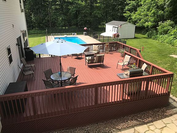 Contact us or your local realtor (we will pay commission to a realtor) to take a look today! Enjoy the privacy in this quiet, friendly neighborhood of Hickory Heights Sub Division. A traditional 4-5 bedroom, 2.5 bath home located at the end of a cul-de-sac, giving this property more privacy. The outside of this home includes two storage sheds, three raised garden beds, a large back deck, and a heated in-ground swimming pool. The home offers a two-car garage, a spacious eat-in kitchen that adjoins the family room and formal dining area. The upstairs includes an office, 3 bedrooms, with the master suite having a private bath with a jet bathtub and a roomy walk-in closet. The washer and dryer are also located on the top floor for convenience. The walkout finished basement includes a large living room, office or bedroom, and a storage area.