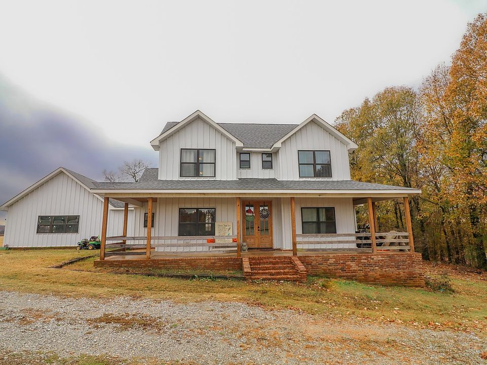 Check out this stylish modern farmhouse that sits on 3 acres in the Westside School District!! With a large back porch and a beautiful view, this is the perfect spot to spend your evenings watching the kids play outside! When you walk in the front door your eye catches the vaulted ceiling with the bricked gas fireplace. You will then move to the beautiful kitchen cabinets and the white quartz countertops, stainless appliances, and the designed backsplash!! The kitchen and dining area overlook the living room which gives an open feel, perfect for hosting family and friends! Don't miss all the windows and big double doors going out to the back porch! The master suite offers a subway tiled walk in glass shower, double sinks, and a walk in closet with great space! There is another bedroom downstairs with the bathroom having a tiled walk in shower. Upstairs has two bedrooms with a bathroom and an extra room that could be used for and office, storage, play room, etc. To top it off there is a walk in pantry and a separate laundry room. The perfect house with all the space you would need!!