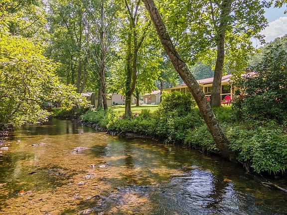 Over 200 Feet of Rushing Coweeta Creek Frontage! Fish and Tube from your own backyard! Unrestricted, Flat, all usable, .80 Acre Parcel. Outdoor Living Space includes Front and Back Porches - Back is a 23.7' X 8' Screened Porch. Bonus Private Porch off the She Shed for Happy Hour gatherings! Flat Yard for kids to play or have a garden. Move right in! All Furniture and Furnishings in Cabin (except BBQ Grill) are staying. Spacious Powered Workshop with Garage Door, Plus the She Shed for additional Storage. 3 Bedrooms, 2.5 Baths, Open Plan w/Vaulted Ceiling and Wood Beams. Woodburning Rock Fireplace. Spacious Primary Suite was added 2001+/-, has Full Bath, Sliders to the Porch and a Creek View. Fresh Interior Paint, newer Luxury Vinyl Plank Flooring in Living/Dining/Kitchen and Hallway areas, metal roofs on both outbuildings new 2019. Would make a nice vacation rental. Current owners have Optimum Internet. Home and property are in the 100 year flood plain. Road Maintenance is $250 per year, voluntary. Very easy access. USFS land within 10 minutes for hiking these beautiful mountains.