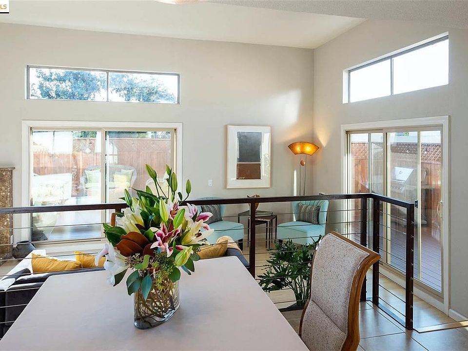 Rare three-bedroom penthouse unit in the heart of Oakland's vibrant Grand Lake neighborhood. Enjoy semi-private keyed access to the penthouse level and corridor leading to entry. Tasteful upgrades include custom textured tile wall at the entrance, barn doors and updated bathrooms. Check out the view of the Oakland Hills from the kitchen and city lights facing west. Illuminate your evenings with cafe style LED lighting on the brand new trex wrap-around deck. Thoughtfully designed split-level living room with stone fireplace leads to the outdoors, perfect for entertaining or relaxing evenings at home.