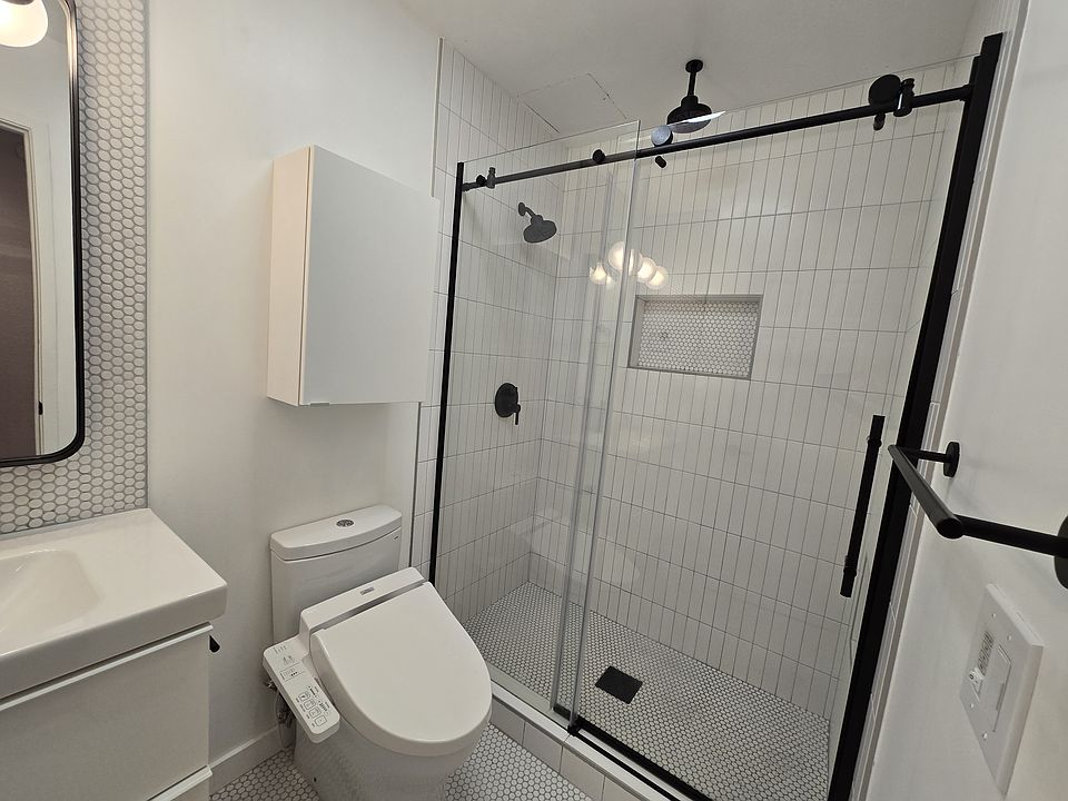 Modern, upgrade 1br/1ba with luxe bathroom! App-operated laundry just down the hall Private patio accessible via sliding glass door Double-pane windows, internal courtyard with pool (under repair) Bike parking Dedicated garage parking spot Cats/dogs weighing 25 lbs. or less Dine-in kitchen: Bosch dishwasher Dimmable chandelier Frigidaire Flat-top electric range LG microwave Frigidaire refrigerator New Quartz countertops Fully renovated upscale bathroom: Walk-in shower Double shower heads Built-in bluetooth speaker Toto "washlet" bidet toilet with heated seat Dimmable lighting Penny and subway tile Grand Lake Farmers Market, Grand Lake Theater, shops, restaurants, Lake Merritt, Whole Foods, Trader Joe's nearby. Buses nearby that connect to BART. Right off highway 580, and near 80, 24, 980, and 880. Water, trash, and dedicated parking included. To apply: proof of income, credit check, rental history. No cigarette smoking