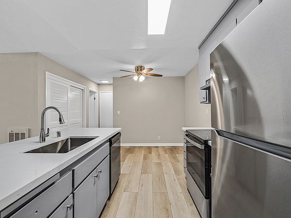 Discover this beautifully updated one-bedroom, one-bathroom condominium located on the top floor of 466 Crescent Villas. Enjoy vaulted ceilings and an open floor plan that enhances the sense of space and light. The unit boasts a contemporary kitchen with sleek quartz countertops, stainless steel appliances, and modern fixtures. The bright and airy living room seamlessly connects to the spacious bedroom, which features an abundance of closet space. Located in the popular Upper Grand Lake neighborhood, this condo is just blocks away from Grand Avenue and Lakeshore Avenue. You'll be close to an array of popular destinations including trendy restaurants, cozy coffee shops, Trader Joe's, the Grand Lake Theatre, boutiques, and the scenic Lake Merritt. Make this modern retreat your new home and enjoy the convenience of urban living with a touch of elegance! Owner pays for water and garage. One parking space is included in the rent. One year lease.