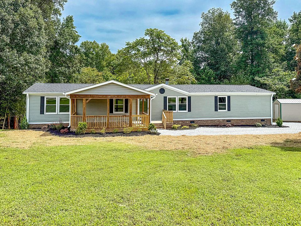 Large covered front porchNewly graveled drivewayFlex roomFreshly landscaped yardNew ceramic tile backsplashSpacious primary suiteDouble vanity