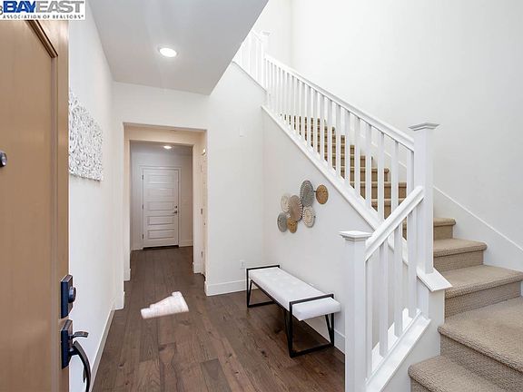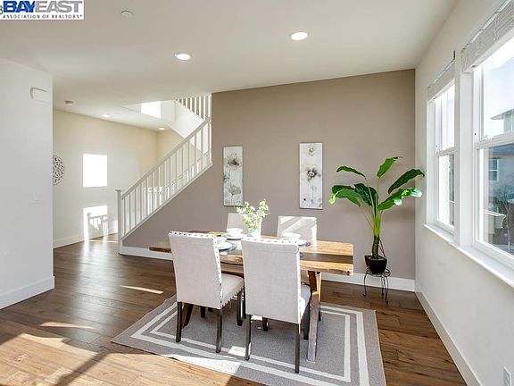 With easy access to San Francisco and Oakland, this luxury Plan 4 townhome-style condo at Symmetry at Alameda Landing HOA was built in 2017 and is full of builder upgrades and beautiful finishes. This spacious, 3-story residence offers a flowing, thoughtfully designed floor plan that includes 3BR, 2.5BA, an open family/kitchen/DR great room w/plenty of windows for abundant natural light, a 1st floor flex space, a laundry room, expansive balcony & a 2-car garage. Finishes/details include 9-ft ceilings, hardwood floors, quartz kitchen/bathroom counters, stainless steel Bosch appliances, central AC and energy-efficient dual-pane windows. Located on a non-thoroughfare street around the corner from a complimentary BART shuttle & the dining/shops at Alameda Landing, the home offers easy access to Spirits Alley, the SF Ferry, Posey/Webster Tube & freeways. This sophisticated, turnkey residence offers a contemporary Alameda lifestyle at its very best!