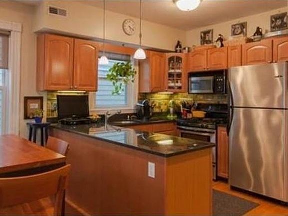 Premier east side location delivers two bedroom / two bathroom home perfect for executive couple and ideal for roommate situation! This entire floor through features a large eat-in kitchen with maple custom kitchen cabinetry, granite counters and stainless steel appliances. This home also features two large bedrooms with custom closets by "California Closets" custom window treatments and a gorgeous master bathroom. This very well maintained unit offers central air, hardwood floors throughout, four sun exposures with views of water, deeded storage, in-unit laundry, oversized living room / dining room open floor plan followed by a private rear sun deck. Sept 1 Renewal Option