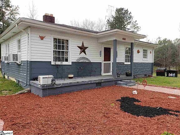 Cute as can be 2 bedroom home in Honea Path SC. This home has been updated and has hardwood floors throughout. The huge family room has a wood-burning fireplace with insert and opens to the kitchen with an eat-in area. In the kitchen, there is a pantry with vintage doors. The larger bedroom opens up to back deck and has tons of light!! In the bathroom is a vintage claw foot tub! Nicely landscaped yard with front porch and deck on the back. Some updates include wiring, plumbing, painting, refinishing floors, etc. The home has 3 window units that are for heat and cooling and do a great job of heating and cooling the home! At one point, the home had a gas pack so that could be added by new buyer if they desired, however, seller prefers the WUs.