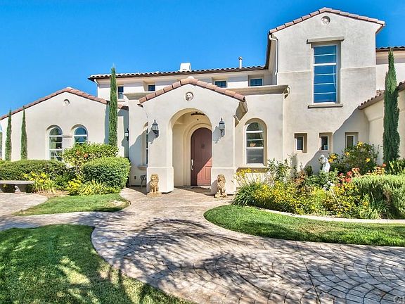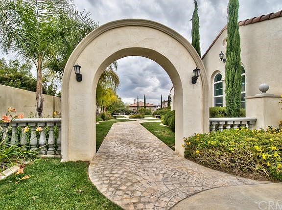 REDUCED!Absolutely Beautiful,Elegant Estate Home in One of Riverside's Finest Neighborhoods.Expertly designed landscape,approx.¾ acre lot,welcomes you to this stunning view home w/pool.Property sits up & away from street,offers stamped concrete walkway,archway & pillars welcomes you to private entrance,features several conversation areas,one w/beautiful fountain & another w/warming fire pit.Impressive entry w/coffered ceilings & crown molding leads you to amazing formal living rm w/double height ceilings & windows,a floor to ceiling custom marble fireplace & exquisite chandeliers.Large formal dining rm w/privacy door.Fam.rm w/ornamental columns,fireplace,opens to gourmet kitchen w/central island,marble & granite surfaces,upgraded cabinetry,stainless GE Monogram appliances,dbl ovens/warmer,48" sub zero,vent hood,microwave,walk-in pantry,breakfast rm w/slider to patio.Main floor master ste.w/retreat,master bathrm w/Roman tub,makeup vanity/dressing area & dual sinks/vanities.Wrought iron staircase leads you to loft/cat walk over living rm.Ancillary bedrms w/walk-in closets & en ste baths.Yard w/patio,built in BBQ w/sink,lighting & add'l fountain add ambience.Central courtyard.Pool & spa water features,use of rock & stone complement this exceptional property.