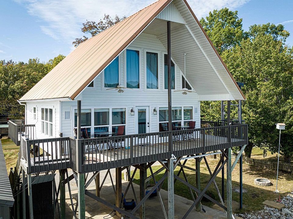 WATERFRONT HOME, NEARBY GOLF COURSE, & MARINA! Wake up overlooking the Tennessee River! Master Bedroom on main level, 2 big bonus rooms on 2nd level, and 2BA. Fresh exterior paint. Cabin comes fully furnished and features all hickory floors, a lift, and wrap around deck with unobstructed water views. The back portion of the deck is covered and has 2 ceiling fans to help keep you cool as you enjoy the river. 20x42 detached awning. Tennessee River Golf Course is a golfcart ride away. The home is located in Fisherdale Community, adjacent to Fisherdale Marina and Mermaid Marina. Featuring conveniences like restaurants, fuel, entertainment, boat launch, and a store. Bring your boat, ATVs, and golfcarts. Act fast before it's gone! This property would also be a wonderful investment property. Schedule appointments through Call Center 731-421-8100. Call Cristi with questions 731-602-0315.