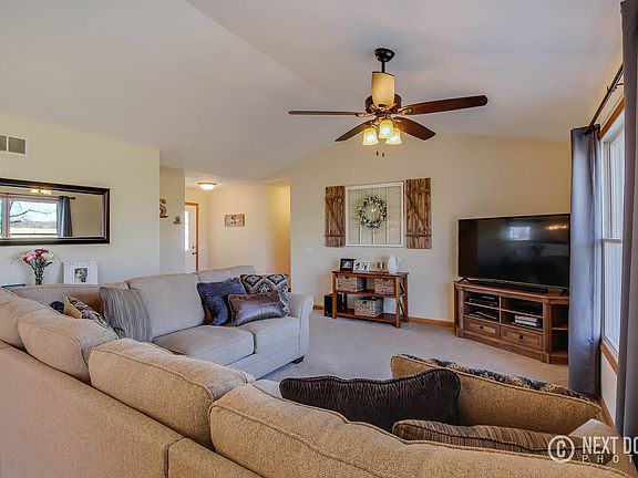 Imagine yourself entertaining in this spacious open concept home with vaulted ceilings in the living room, open to the dining area and kitchen. The partially finished basement features a bar area, family room, office area and a game room area and a huge storage area. If the weather's nice, enjoy the outdoors with a large patio, fire pit and no neighbors behind you! The landscape is fresh, plantings were added a couple of years ago and coming in nicely. The lake is close and offers fishing, skiing, tubing, wake boarding or just relaxing on the beach and watching the sunset. All stainless appliances in the kitchen stay, tile back splash, updated lighting throughout the home, first floor laundry with cabinets. Walk in closet in master and large master bath. Ample storage both upstairs and down. This is a very nice home you won't want to miss! See it today!