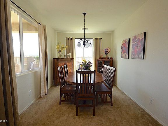 Stunning townhome with loads of upgrades: The biggest one being the beautiful tile floor that look like wood. The kitchen features granite countertops, upgraded cabinetry, and roll out shelves. The kitchen features a island kitchen lay out and is open to a large great room which also has a fireplace, eat in area, formal dining room, and magnificent views of the Bradshaw Mountains as well as the green belt space that is located to the left of the property. This property is located within walking distance to the park. It also features a split bedroom plan. The master bedroom features a large walk in closet, and a step in shower. The garage is a 2 car garage. There is also a fenced backyard that offers great mountain views, and wonderful sunsets! Come see today, You will LOVE IT!