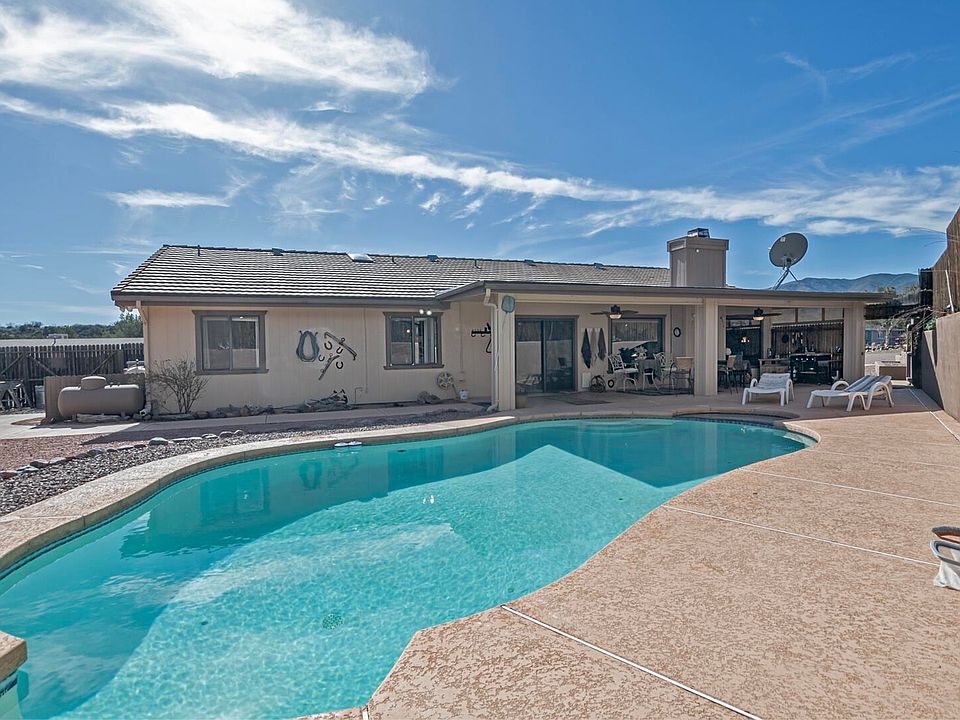Looking for the perfect home? This stunning property in Deer Creek Village is a gem! Situated on a large corner lot, this site-built house boasts 3 bedrooms, 2 bathrooms, and a 2-car garage. Enjoy the luxury of a pool and spa, perfect for relaxation or entertaining guests. The split floor plan offers a spacious master bedroom with an ensuite bathroom, a generous indoor utility room, and a huge living room with a fireplace. The kitchen has been recently updated and overlooks the large back patio, providing ample space for outdoor gatherings and pool parties. Additionally, there is plenty of room for RV parking. With a privacy fence and large shrubs in the front, you'll enjoy the privacy reminiscent of some Bel Air homes. Located just 15 minutes south of Payson and 45 minutes to Fountain Hills, this property offers the perfect balance between convenience and tranquility.