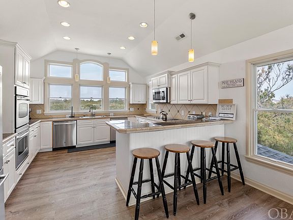 Absolutely captivating, this prestigious Pine Island home with 8 bedrooms and 7 full, 2 half baths is a coastal haven just steps from the beach. Luxurious vinyl plank flooring welcomes you, while the top floor’s open plan and abundant windows offer breathtaking views. The chef’s kitchen features double dishwashers and ovens, complemented by a ships watch and new top-floor decking. Six en suite bedrooms ensure comfort, and the game room with a kitchenette, pool table, and Pac-Man provides endless entertainment. Outside, a saltwater pool, hot tub, and oasis beckon, complemented by a cabana bathroom and outdoor shower. Meticulously maintained, this gem in Pine Island grants exclusive access to pools, tennis, and more. Embrace coastal luxury in the premier neighborhood of Corolla.