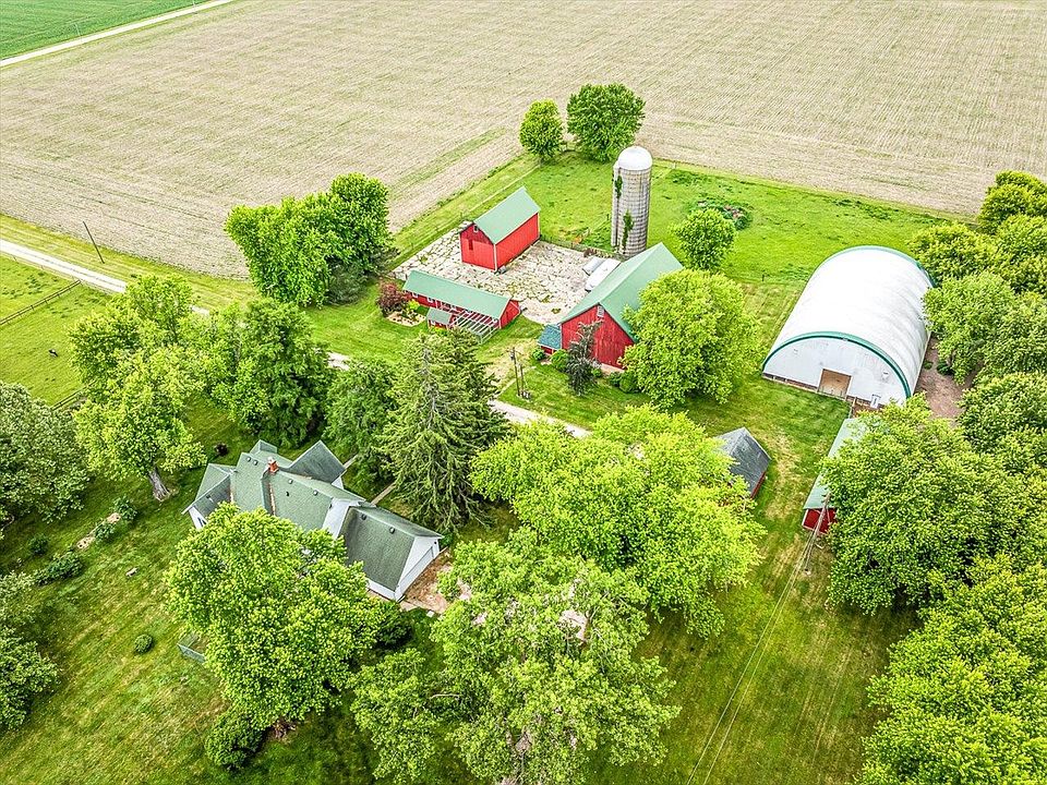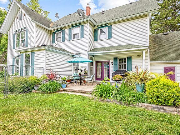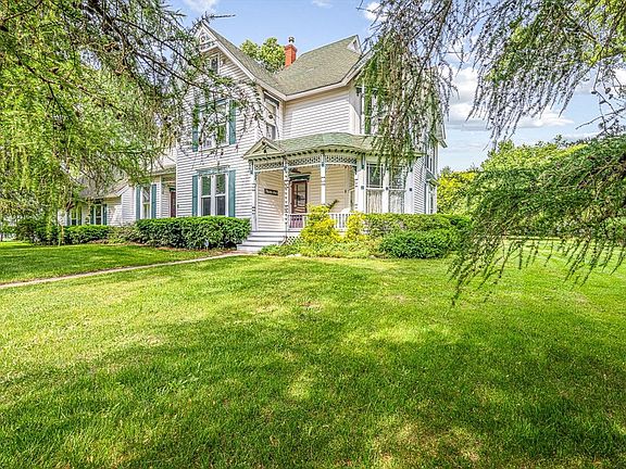 The private oasis you have been dreaming of! Surrounded by open fields, this 4,100 sf Victorian sits on 7.54 acres of total peace, quiet, & privacy! Zoned AG, all animals welcome! This sprawling property includes 6 outbuildings, 3 garages, & 2 homes! The main house is a Grand Victorian from 1889 that has been beautifully maintained! Inside you will find original hardwood flooring, arched doorways, pocket doors, high ceilings -12 ft main & 10 ft up, tall windows – many with stained glass, & stunning extra wide carved woodwork with decorative corner blocks. The kitchen and baths have been updated with new flooring, cabinetry, fixtures, appliances & plumbing. The main floor features the living area, office, dining room, kitchen, & den (or possible 5th bedroom) & full bath with double vanity. Glass atrium doors off the kitchen lead to a patio & fenced area perfect for pets or young children. There are 4 bedrooms up, 3 with walk-in closets, & a 2nd full bath. A separate stair leads to the “maids” bedroom & there are 2 large storage rooms off of that. There is even a convenient 2nd floor laundry! The 3 bedroom, 1 bath cottage is a very successful Airbnb with its own yard. Keep it as a guest house or use it for extended family or a business office. The land includes 4 fenced pasture areas, 2 paddocks, gorgeous low maintenance perennial gardens, apple & cherry trees, grapevines & blueberry bushes. This amazing setting has hosted many celebrations & events including weddings & wine tastings. The possibilities are endless, from horse farm to event space! Located just 3 miles from all amenities and the I90 expressway, you get the convenience of being close to town, with all the peace & privacy in the world at home. Come see this beautiful property for yourself! You will fall in love!