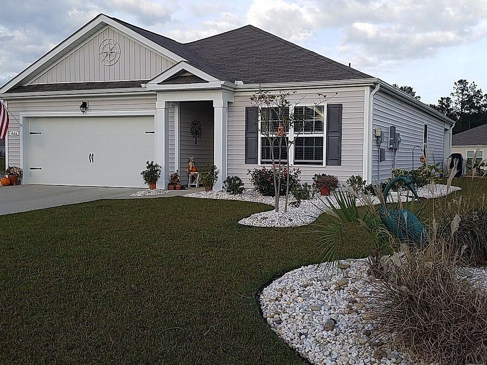 3 bedroom 2 bathroom home in the Anchors Bend community of Longs. Kitchen features stainless steel appliances, 36" maple cabinets with pendant lights over the gourmet granite counter-height island overlooking the spacious living room and dining room. Ideal for entertaining. Low maintenance luxury vinyl wood plank floors throughout the living area. Leading off the dining room sliding doors is a 12 x 10 ft. covered porch. Owner's suite offers a large walk-in closet and bath with large shower and vanity with double sinks.