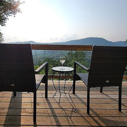 This is a brand new beautifully crafted home with many artisan quality touches. Floors are white oak throughout, countertops are English Walnut and Cherry with a custom built bar. Fully modern kitchen. Indoor and outdoor showers and an outdoor kitchen with pizza oven and fireplace. But this property is really about the acreage and the view of the Greenbrier River. It is a VERY unique and special property with plenty of space to build another home or two for a true family remote get away. 2 Sides are bordered by sheer cliffs that drop down 60 feet to the river and a creek -- the other two sides are forest and there is a locked gate on the drive. Black Dog Ridge is 4.5 hours from DC, Pittsburgh and Columbus OH and 3. 5 hours from Charlotte.