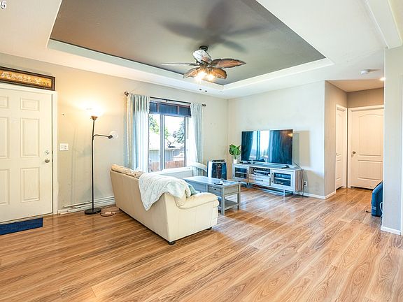 Discover this charming 2019 manufactured home nestled on its own land. The property features a spacious and open layout, with a well-appointed kitchen that includes a central island, oak cabinets, a dishwasher, a free-standing range, and a free-standing refrigerator. The primary suite is thoughtfully positioned on one side of the home, offering a private retreat, while two additional bedrooms are located on the opposite side for added separation. Both the kitchen and bathrooms are equipped with elegant oak cabinets. The home sits on a fully fenced .19-acre lot, providing ample outdoor space for various activities. A convenient storage shed is also included for additional storage needs. This well-maintained property is ready to become your new home. Schedule a visit today to explore all it has to offer!