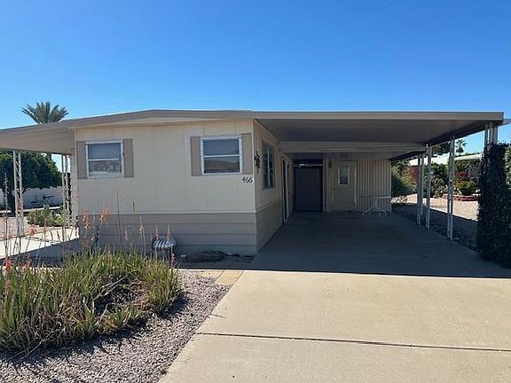 This is a MOBILE HOME in Fountain of the Sun a 55+ AGE RESTRICTED GATED COMMUNITY. Older mobile home 2 bedrooms 1 1/2 bathrooms, Kitchen, Dining room with bonus Arizona room. nice open yard with a few fruit trees.