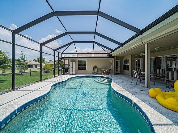 "View 3D Interactive Virtual Tour" Magnificent 5-bedroom, with a den, 3 bath, 3 car garage heated Pool home sitting on an oversized corner lot in the beautiful community of Deep Creek! This great home has over 3,000 sqft of luxury living and has a circular driveway! This split plan home features a spacious living and dining area with sliding doors that will lead you out to the pool deck. Eat-in kitchen features glass cabinets, lots of counter space, stainless steel appliances and large breakfast bar, great to entertain your guest. Right off the kitchen is the family room that has plant shelves & cathedral ceilings. Master bedroom offers walk-in closets and French doors that will lead you out to the pool deck, where you will find the 22x12 heated pool & outdoor kitchen. Master bath has dual sinks, garden tub, and walk-in shower with tile walls up to ceiling. Second bathroom features tiled walk-in shower and third bath has access to the pool deck. This home is a MUST SEE! Utility room comes with washer and dryer and has counter space and cabinets, great for storage! Home comes with automatic hurricane shutters on the back! Don't miss out on this amazing home! Completely fenced and move in-ready! Call today for your private tour!