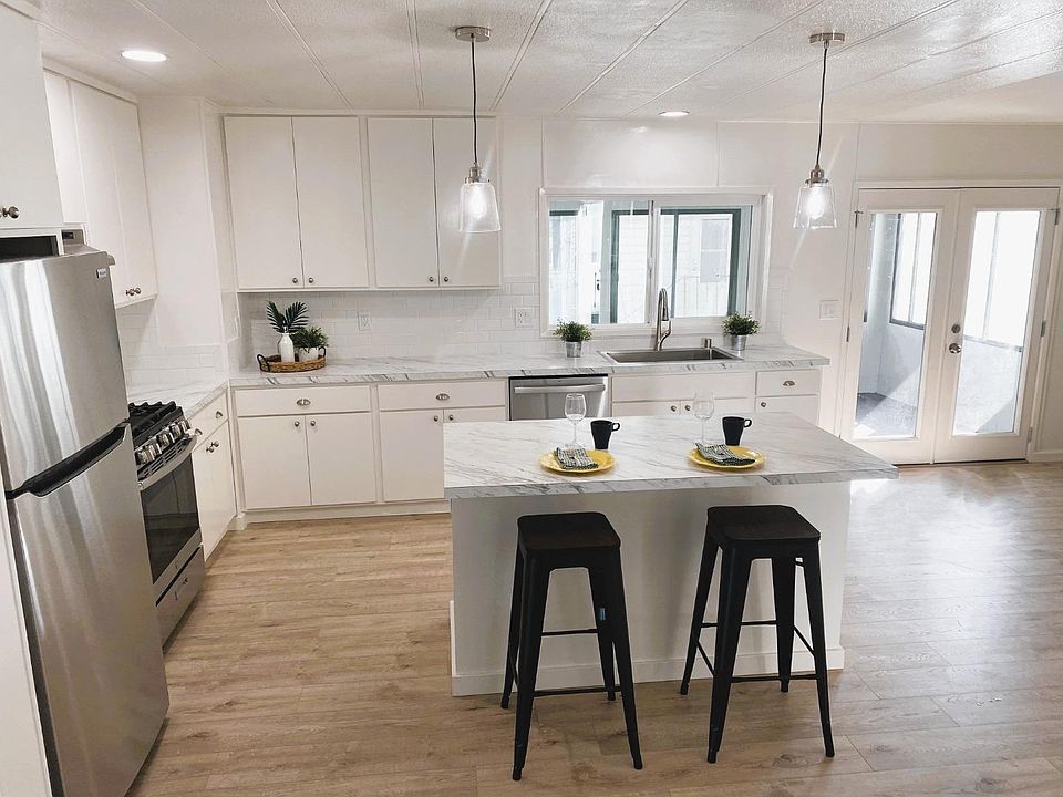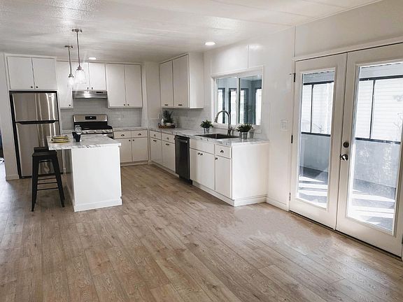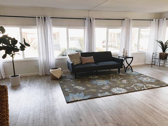 BEAUTIFUL REMODEL & NO PROPERTY TAXES! Two bedrooms, two full bathrooms. 1,440 square feet. Double pane windows. French doors. Stunning new kitchen with stainless appliances, beautiful white cabinetry, lots of counter space, and a breakfast bar for plenty of seating. Recessed lighting. New flooring throughout. Living Room and Family Room. Freshly painted. Separate laundry room. Enclosed patio room (not included in square footage). Located in the highly desirable Mission Bay Community. Buyer must be 55 years or older to qualify for the park. Space rent is $1,308.