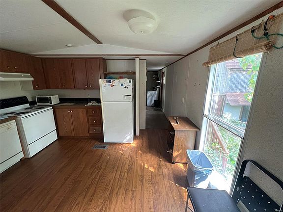 Manufactured Home on Private lot! This single wide is in generally good shape, however the yard is very overgrown and the rear deck is not safe. At this price, you can easily make this a great home! It has 3 bedrooms, open kitchen, roomy living room and a laundry area. There is a small outbuilding behind the home. Do not go out onto the deck. Home is sold AS IS. Seller will do no inspections or repairs of any kind.