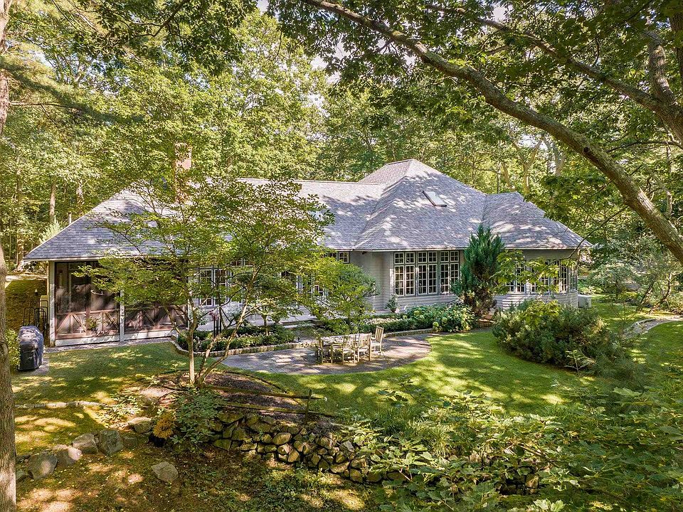 Thoughtfully positioned on a beautiful two plus acre lot shaded by tall oaks, this European-style residence embraces nature's serenity. Built in 1996, the alluring hip-roofed home, along the winding Shore Road in Cape Neddick, incorporates a variety of features that bring in the outdoors. Most obviously, handsome windows flank the home on multiple sides, providing scenic views of the trees, manicured gardens, and shrubs that fill the verdant grounds. Outside, a sculpted stone pond emits gentle water sounds and is home to many colorful Koi that appear to be blowing kisses while greeting you upon entry. A ''setback from the road'' feel and terraced yard give the dwelling an extra-secluded atmosphere, while hardwood floors, high ceilings, and walls of glass create a sense of openness. Inside, find over 3,500 square feet with numerous natural touches, including the great room's floor-to-ceiling stone fireplace, the raised kitchen with leathered granite countertops, and an exquisite, custom walk-in butler's pantry with marble countertops. Enjoy single level living which includes a first-floor primary suite that captures the peacefulness of the location and surrounding terrain with access to the 3-season porch. The library also invites the outside in with more high ceilings and walls of windows. The suite on the second floor is a great space for guests to enjoy their privacy and consists of a large den, private bath and bedroom.