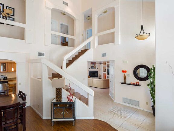 Exceptionally built two-story home with 4 bedroom/2.5 bathrooms and a separate 1 bedroom/1 bathroom guest house located on premier lot in coveted Rio Rico Subdivision! Home features tile roofing, two car garage, premier lighting, plantation shutters, wood flooring, fireplace, built-in aquarium, bar area, built-in entertainment system, travertine counter-tops, laundry room, two balconies with mountain views, and is completely pre-wired for surround sound! Exquisite kitchen includes top of the line granite counter tops, breakfast bar/island, gas stove, and premier stainless steel appliances! Master bathroom includes walk-in shower, spa/tub, travertine tile, and dual sink areas. The home was constructed using 2 x 6 construction for additional insulation... (please see 'more' field)