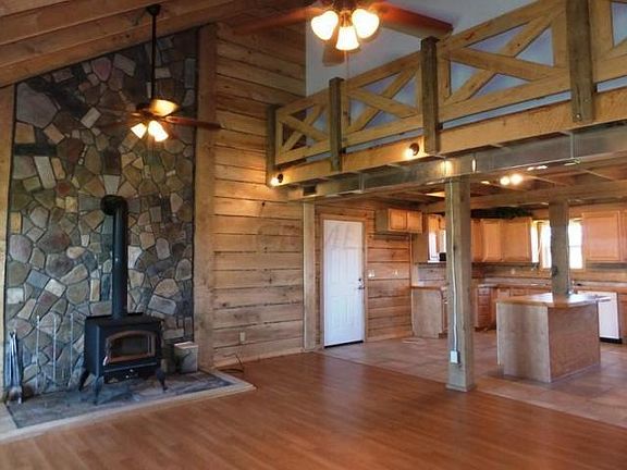 Rustic, well-maintained home nestled on nearly an acre. This stunning, open floor plan offers a 1st floor owners' suite with private bath, vaulted ceilings, solid wood doors & hardwood flooring. The spacious kitchen is open to the great room, with wood burning stove and stone fireplace surround. This kitchen offers a large island with breakfast bar, maple cabinets, tile floors & countertops, and dinette. Spend your evenings relaxing on the front porch or on the rear patio. This home is a must see!!