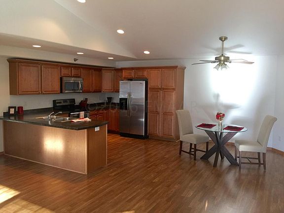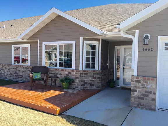 Quiet 55+ Neighborhood in South Fargo. Short walk to multiple amenities of both eateries & shopping. Beautiful almost new upgraded end unit w/extended finished garage & spigot. Open floor plan w/vaulted ceilings. Alder cabinets w/eat up breakfast bar and pantry with rollouts. Tile floors in both baths and laundry drop station. Master suite boosts 2 closets, 2 sinks and large linen! Laundry room includes upper & lower cabinets for storage and drop area off the garage. Wood deck for afternoon sun, Commons area for morning coffee, game of cards, cozy fireplace and kitchen to gather with family & friends.