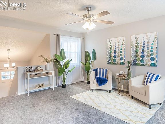 Come see this quaint Stetsons Hills home! Located on a quiet cul de sac conveniently close to all the highly desired shopping, food and entertainment on Powers Blvd. This home is also nicely positioned near Peterson Space Force Base and hospitals on the northeast end. On the main level the layout provides a 2 car garage, an expansive living area with fireplace, laundry, bathroom and bedroom. Upstairs you will find an open concept living room and kitchen, as well as the master bedroom, bathroom, and additional bedroom. Walking outside from the upstairs kitchen you'll be greeted by a new composite deck situated over a large back yard and expansive mountain views! Other features include updated double pane windows, automatic sprinklers, air conditioning, smart lock system, and an impact resistant roof!