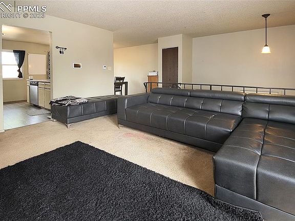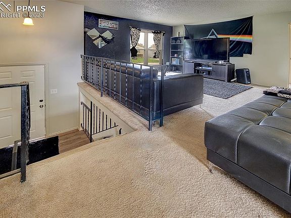 Welcome to this inviting and well-lit home, boasting newer wood laminate flooring in the entryway, kitchen, and upper-level bathroom. The kitchen impresses with its modern stainless steel appliances, including a refrigerator. Step into the dining area, which conveniently leads to a large deck that provides a lovely view of the backyard. The lower level offers a cozy family room with a wood-burning fireplace, a 3/4 bathroom, a laundry room, and a spacious third bedroom. Enjoy an easy commute to Ft Carson, Peterson AFB, and Schreiver AFB.