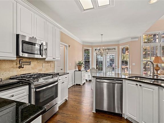 - Kitchen Features: Eat-in Kitchen, Pantry, View to Family Room, Stone Counters, Pantry Walk-In, Breakfast Room, Other, Cabinets White