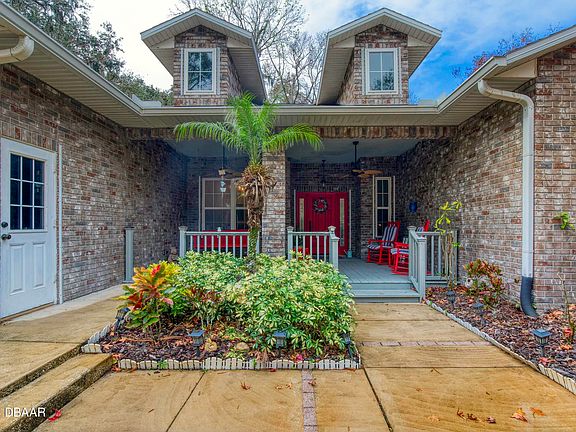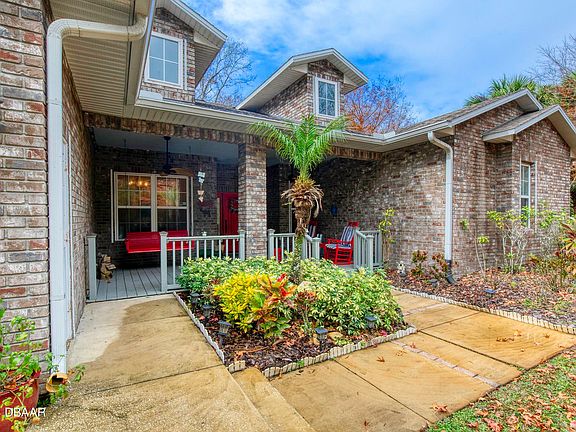 Welcome to this perfectly proportioned three bedroom two full bathroom, two car garage home on a private wooded lot in Edgewater. The first thing you notice as you approach the front door is the lovely covered craftsmen-style 20' x 11' front porch complete with brick columns and porch swing. Stepping inside, you are greeted with 10' ceilings and gleaming hardwood floors throughout the home. From the foyer, you notice the open floor plan that flows seamlessly from dining room, greatroom into a chef's kitchen. All kitchen cabinets feature pull-outs that maximize storage. Besides an oversized pantry, the kitchen features granite countertops, SS Kitchenaid appliances including double ovens, dishwasher, glass cooktop & refrigerator/freezer. The center island has its own prep sink and overlooks the breakfast bar that opens onto the greatroom. French doors open onto an open air back patio. In the greatroom, French doors open into a covered, screened-in Florida Room. The primary suite features his and her walk-in closets with built-in organizers, a separate office/sitting room and a large primary bathroom outfitted with a jetted soaking tub, glass walk-in shower, dual vanities and private commode room. This bedroom also has double French doors that open onto a private backyard patio. Both the second and third bedroom along with the second full bathroom are situated on the opposite side of the common areas giving the owner's suite extra privacy. The laundry room connects directly to the oversized two car garage with workbench and additional storage. This home is the epitome of privacy and tranquility all within easy reach of shopping, dining and other amenities.