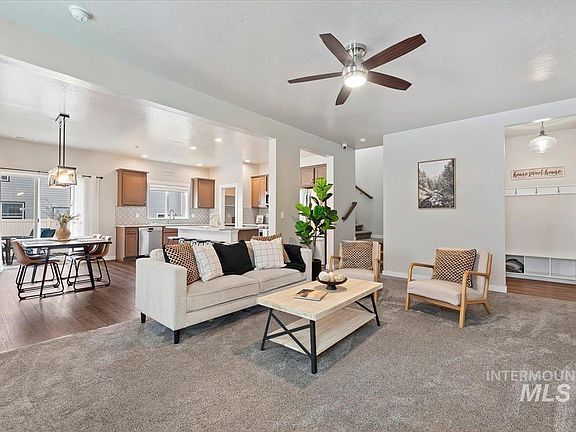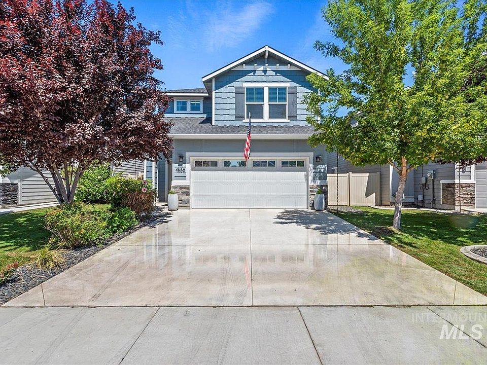 Welcome to this former model home in Meridian’s desirable community—where warmth, comfort, and thoughtful design come together beautifully. Offering 3 spacious bedrooms, 2.5 baths, and over 2,000 sq. ft., this home blends charm with practical living. The sunny kitchen is a true gathering place, featuring quartz counters, a gas range, a generous island, and upgraded cabinetry that flows into the dining and living spaces. Upstairs, a flexible bonus room invites you to create a cozy office, movie spot, play area, or hobby space. The master suite feels restful and welcoming, with dual vanities, a walk-in shower, and an impressive closet. Step outside to a fully fenced backyard with raised garden beds—perfect for relaxed evenings, pets, or weekend get-togethers. Located in a top-rated school district and close to shopping, dining, parks, trails, and convenient Hwy 16 access, this move-in-ready home offers fantastic upgrades, warm modern touches, and a lifestyle you’ll instantly feel at home in. Reference Features List in Docs for Upgrades