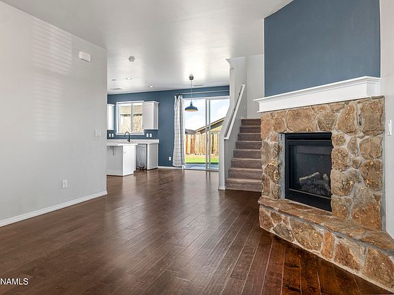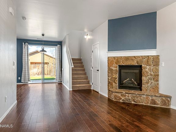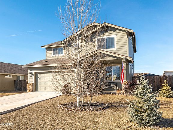 Don't miss this well cared for Bellemont home in the Flagstaff Meadows community. Built in 2018, it offers many custom upgrades, energy-efficient features, an owned solar system, and A/C. The lower level includes a main living area with a stone gas fireplace, upgraded wood flooring, and an eat-in dining space. The spacious kitchen has quartz countertops, stainless steel appliances, tons of storage, a large center island, and a walk-in pantry. Upstairs, there's an open loft ideal for a home office. The primary suite features peak views, a walk-in closet, and an ensuite bathroom. Two roomy guest bedrooms provide plenty of space for family and visitors. The oversized lot includes a fully landscaped backyard with synthetic grass and a paver patio. This home is an absolute must see!