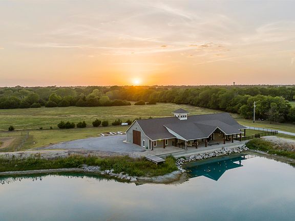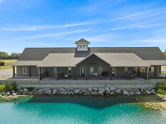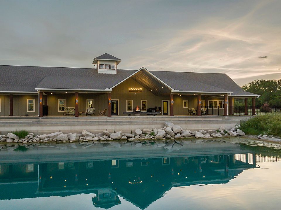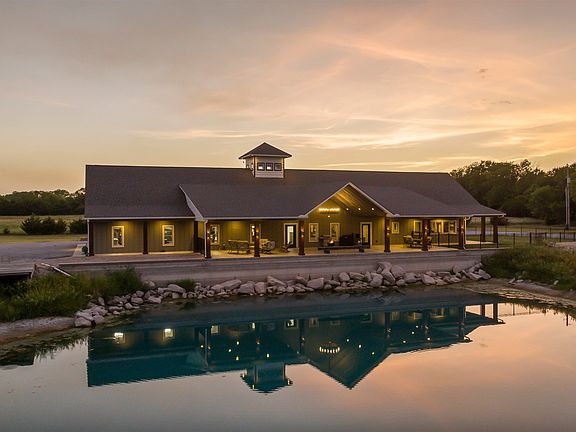 Enjoy the lifestyle! Acreage, Water View, Privacy, and still close in. This Rustic Contemporary is perfect for Entertaining, yet offers seclusion and peaceful water views enabling one to “get away from it all”. Situated on almost 20 Acres, this Rustic Contemporary 2BR, 3BA home is just minutes from Derby & Wichita on blacktop roads. Unique, thoughtfully constructed home was created with functionality and durability in mind. Boasting rustic wooden accents and tasteful modern finishes throughout. Zero entry ICF built home stands to impress. Large open concept space with 9' ceilings & radiant heated polished concrete floors throughout the whole home and garage. The kitchen is a cook’s dream, overlooking the large pond with a brick accent wall, tons of granite counters & farmhouse sink. Features include a huge island bar, induction cooktop, convection oven, whisper shut drawers and pull-out shelves. Fabulous pantry/laundry combo can be found through hidden kitchen cabinet doors with plenty of shelf and storage space with an additional sink, as well a nice-sized storm cellar. Master wing includes the bedroom suite staged with cedar plank accent wall, generous sized walk-in closet with built-ins, and master ensuite with a separate toilet, granite countered double vanity with bowl sinks, wood vanity, and a tiled walk-in shower. Additional bedroom and second full bath complete the main portion of the home totaling 2680 sq ft. An additional 2785 sq ft of living space is included in the finished attached garage. This huge bonus room of a garage offers 16’ ceilings, 14’ garage doors, and is large enough to park a 40’ RV with plenty of room to spare. This space accommodates RVs, boats, golf carts, ATVs, and more. As a bonus, the climate controlled living space of a garage includes an L-shaped tin-topped dry bar, built in refrigerator, and additional bath making this a perfect “Man Cave”. There is a 10x10 loft room that leads to the crow's nest with spectacular panoramic 360 degree window views - perfect for capturing sunrises and sunsets or enjoying a quiet moment sitting on top of it all. There is room to grow with space to add 3 additional rooms upstairs per the previous owner. Moving outside, this home doesn’t skip a beat. Outside the front door is a porte-cochere large enough to park 3 vehicles and includes plenty of additional parking space. Around to the back is an Outdoor Enthusiast’s Dream. Great for entertaining or quiet introspection this impressive 75’ x 25’ covered patio is constructed with 9 ft deep of concrete and sits right on the water overlooking the 3-acre pond; which is 15’ in depth stocked with bass, catfish, carp and bluegill, with its own dock. A True Private Resort. Adding to the thoughtful intention put into this property, the home was built with a master drainage plan with overflows from the pond flowing to the south and designed so that the water will never reach closer than 7-9 inches from the patio edge. Additional features included are a 50-amp RV hookup, drain outs for RV systems, high speed internet, surge protector, LED lights throughout, a paved sidewalk around the homes perimeter, keyless entry, 2 irrigation wells, 2 HVACs, an aquifer, and so much more! Homes like this don't appear often so don't miss your chance to own a space that truly says “Enjoying the Midwest!”