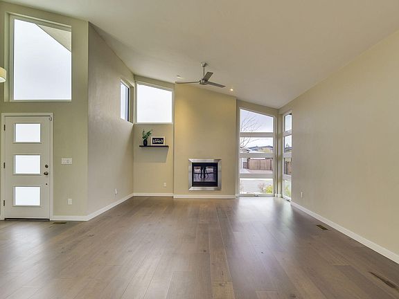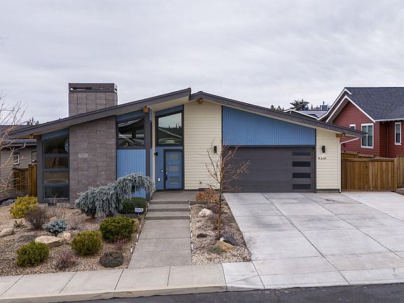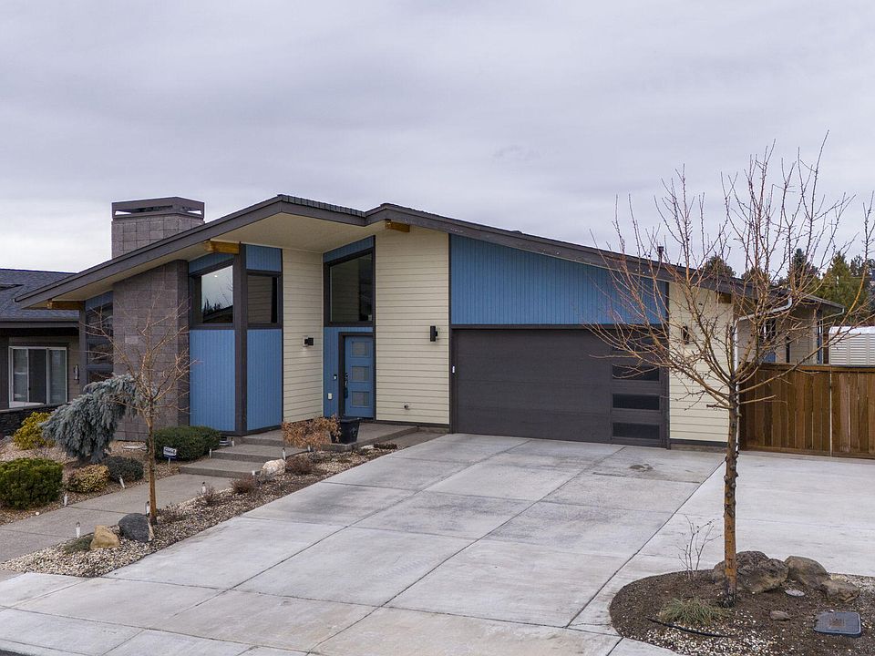 This mid-century modern home features a spacious open floor plan(perfect for entertaining), large windows, living room with gas fireplace, open island kitchen with quartz countertops, pre-finished wood floors and Energy Star appliances. A large patio. 40' deep tandem 3 car garage.. Built to Earth Advantage standards. Extensive concrete patios for low maintenance in the back yard. The front yard is xeriscape. Mountain views from Great Room.