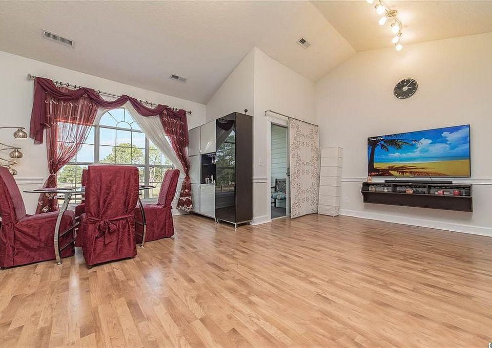 A super rare find-Updated and tastefully decorated one bedroom and one and half bathroom condo with vaulted ceiling overlooking one of the prettiest golf course on the strand. Upgrades:granite countertops and matching floor tile,accent wall in the master bedroom,tiled shower walls and closed off master bathroom to create privacy. One mile to the beach,Broadway at the Beach,close to shopping,restaurants and entertainment for all ages. Available for year round lease starting July 1st. No Pets/No smoking. Credit Report and Background Check will be required. Tenant pays electric.