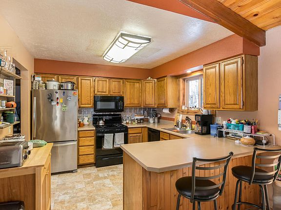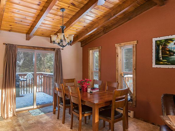Beautiful home with large paved driveway in a desirable Skyline neighborhood! Huge landscaped yard with two decks, hot tub, large storage shed and chicken coop. Gorgeous vaulted ceilings upstairs, open living/dining area with back deck access leading to private yard. Master includes a walk-in closet and a private patio. Additional living room with wood stove, bedroom and full bathroom downstairs!
