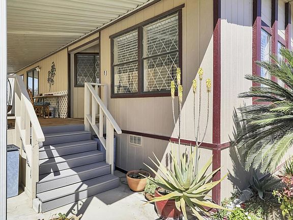 Wonderful 2 bedroom 2 bathroom home in the 55+ gated community of Rancho Casitas Mobile Home Park. The vaulted ceilings and light color palette enhance the space! Great floor plan including a tv room off the kitchen, formal dining room and spacious front living area. Newer 410A HVAC and a long covered carport for your vehicles. Low HOA fees and you own the land!!