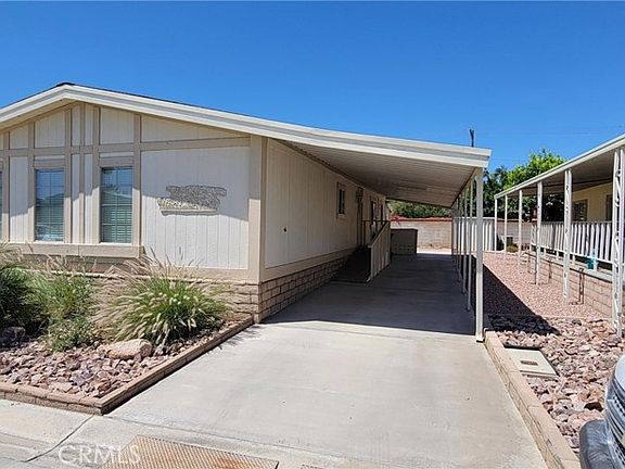 Welcome to Rancho Casitas, a desirable 55+ community in Indio! This spacious double-wide mobile home offers 2 bedrooms, 2 bathrooms, and 1,272 sq. ft. of comfortable living space. The open floor plan features a generously sized kitchen with ample cabinet and counter space, perfect for everyday living and entertaining. Patio covers run the full length of both sides of the home, creating a large, shaded outdoor living area and a covered carport. The property has low-maintenance desert landscaping and includes ramp access to the back door, making it handicap-friendly. Community amenities include clubhouse, pool, and tennis court—ideal for an active lifestyle.