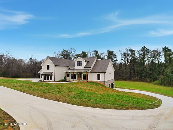 BACK ON MARKET—buyer's home sale contingency was not satisfied. JUST IN TIME FOR THE HOLIDAYS, welcome to this stunning new build -- this 'Copper Ridge' floor plan features custom finishes throughout and 4.5 usable, UNRESTRICTED acres of flat land with wooded privacy! If you've been searching for a brand new modern farmhouse with FULL additional living quarters (perfect for multi-generation living, investment, or simply additional living and entertaining space) and of course acreage, look no further! The interior offers upgraded hardwood flooring throughout the main level, open concept, cathedral ceilings with exposed beams, split bedroom floor plan and stylish accents that are sure to impress. Upon entry you're greeted with an open yet formal dining room adorned with a custom coffered ceiling and sitting area complete with accent wall and upgraded wall sconces. The spacious great room with floor to ceiling gas fireplace is open to the kitchen and has expansive glider doors that lead to a massive rear covered porch with tongue and groove ceilings, fans, and privacy galore. Leathered granite combined with a stunning quartz waterfall island, gas range, hood vent, stainless appliances, ample storage, exposed customized shelving, cozy breakfast room with tailor-made bench seating make the gourmet kitchen the heart of the home. You'll also love the extensive Butler's Pantry with wine cooler, vegetable sink, floating shelves and access to the naturally lit and oversized walk-in pantry. The luxurious owner's suite with cathedral ceiling features a spa inspired bathroom and offers a fully tiled walk-in shower with soaker tub, double vanity, marble tile flooring, and walk-in closet with laundry access. Mudroom with drop zone and powder room with tile accent wall are off the main level, 3 car garage over-sized side entry from primary driveway. The main level guest rooms have private powder rooms and share a tile shower/tub. The lower level features over 2,000 SF of additional living quarters. The full kitchen is complete with granite countertops, tile backsplash, large island with breakfast bar, stainless appliances and is open to the living room. Upgraded LVP and tall ceilings are throughout the lower level which reflect the quality of the main level. The 2nd owner's suite offers a complete granite surround tub and a gorgeous tiled walk-in shower, double vanities and walk-in closet. Fifth bedroom, second laundry room, mudroom, and 4th garage (with paved driveway access) are also on the lower level. The expansive patio that overlooks the level backyard is ideal for entertaining! This RARE Blount County find is turnkey! *Owner/Agent.*