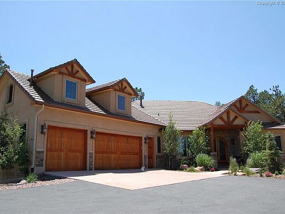 Beautiful Custom Three story Stucco and Stone Walk Out Rancher with tile roofing. This Home Offers The Privacy Of A Forest With A Peak Mountain View Located in High Forest Ranch, the home has access to Gated Private Estate Living! The Property sits on 4+Acres filled with Ponderosa Pine Trees. Enter from a large covered porch into the entry way covered in American Cherry hardwood Flooring. Custom double wood and glass pane french doors lead to a study with large Pella picture windows and Alder wood built in bookshelves. A custom staircase with iron balusters, wood and tile risers lead to the basement. Hallway has a nice sized coat closet. In the main living room, beautiful wood columns lead you into the formal great room. Large gas fireplace with mantle soars to the ceiling. Custom builts and huge picture windows look out to the beautiful forest. High Quality Alder Millwork is throughout this home seen in the baseboards and crown moulding. 8 Ft. Alder Doors. 2 Master Sized Suites. The large Master Bedroom features a Pella Sliding Glass door system that leads outside to a gorgeous balcony view. A gas fireplace with mantle in the corner adds warmth and romance for winter. The Master bathroom has a huge walk in luxurious Steam Shower encased in travertine tile with multiple shower heads. A Jetted Tub, Jack and Jill Countertops with Custom Cabinetry and a gas fireplace also await you in this spa bathroom retreat. A large walk in closet with built ins resides off the master bath. Huge linen closet off Master Suite. The Gourmet Kitchen features tons of Upgraded Stainless Steel Appliances, built in Sub Zero Refrigerator and a Double Oven. Large countertop with see through serving area to the Beautiful large Dining room, with hardwood floors. Custom Alder Cabinetry, Walk-in Pantry, Granite countertops, two Islands. Large Breakfast nook with large picture windows. The kitchen leads to the balcony that has a large Outdoor Built-In Gas Fire pit. Gas line in for BBQ. The main floor has Cherry Hardwood Floors throughout the entire main floor. Central A/C, Central Vacuum System, 2 Story Garage! 2000 Sq ft of Garage space! Access to a Large Bonus Loft Room (600 sq feet) via a custom staircase featuring tile and cherrywood risers. Loft features hardwood floors, beautiful Pella picture windows and mountain and forest views. In the basement the entire floor is covered in special ordered Emser travertine tile. Absolutely gorgeous and easy to maintain. The basement is fully finished with a huge wet bar, Home theater, 3 large bedrooms with walk in closets, 2 full baths, living area and an amazing wine cellar. Outside the property has beautiful custom cedar wood features including shutters and cedar covered garage doors.