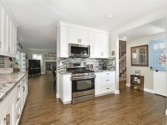 Beautiful Family Home located in the desirable Dutch Haven tract and located down the street from Huntington Harbour. This home is gorgeous with fabulous curb appeal. A warm and inviting home with an open spacious and flowing floor plan, lots of light, with 5 Bedrooms and 3 bathrooms, 3 bedrooms downstairs. The kitchen and bathrooms have been remodeled (the roof & remodeling are 5 years new), the home has been almost completely updated. Enjoy the new gourmet kitchen with new cabinets, granite countertops, glass tile backsplash with stainless steel appliances. The upstairs master suite has a large walk-in shower and spacious walk-in closet. The loft is a great for studying,watching games, playing games.The property has a total of 3 walk-in closets 2 in the downstairs bedrooms, and 1 upstairs. All Bedrooms have mirrored closets. Downstairs has beautiful wood tile flooring and a spacious living room/dining area with a wonderful remodeled custom stone fireplace & sliding glass door that leads out to the extra large side patio and backyard with several fruit trees. The Garage is attached and has direct access to kitchen. This home offers an excellent location close to award winning schools, Parks, Bella Terra Mall, Biking & walking trails, Beaches, Restaurants & shops, Easy Fwy. access & more... This will not last long!