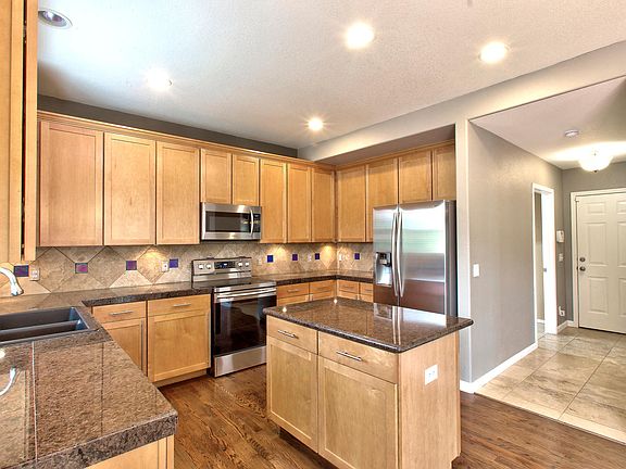 This home has all the upgrades! Backs to greenbelt & Mountain Views! Beautiful h/w floors on the main floor! Custom kitchen: 42" cabinets, pull-out drawers, slab granite counters & sink, SS app., mood lights, pantry, island, & eating space. M/F laundry rm. Spectacular great rm features tons of windows w/plantation shutters, vaulted ceiling, surround sound wiring - this room is great for entertaining w/plenty of room for your piano! Roomy master bedroom w/vaulted ceiling, beautiful 5-piece bath w/dual sinks, & large walk-in closet. 2 large additional bedrooms are upstairs w/a shared bath. Finished basement is perfect flex space; 4th bed/movie theater/game rm/man cave, & 3/4 bath, insulated crawl space. Inviting front porch, private fenced backyard w/stamped concrete patio! Oversized side entry 2.5 car garage 644 sq. ft. w/epoxy floors. NEW: Furnace 2018, Hot-water heater 2015, A/C 2015, carpet 2015, ext. paint 2014, radon mitigation system. Season pass to Grange pool can be purchase.