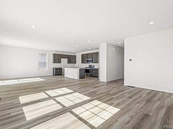 This two-story home boasts a charming design, blending modern comfort with classic appeal. The exterior features a welcoming porch, perfect for enjoying the outdoors. As you step inside, you're greeted by a spacious living area adorned with large windows, filling the space with natural light. The first floor comprises a cozy living room, a well-appointed kitchen with an adjacent dining area, and a convenient half-bathroom. Ascending the staircase leads you to the second floor, where you'll find three bedrooms, each offering ample space and closet storage. The primary bedroom includes an en-suite bathroom for added privacy and luxury. Additionally, there's a versatile loft area, ideal for use as a home office, playroom, or relaxation space. Throughout the home, high-quality finishes and thoughtful details enhance its appeal. With its functional layout and stylish features, this residence provides a comfortable and inviting haven for its occupants to enjoy. Situated in the desirable Revere community, residents will enjoy the benefits of a well-planned neighborhood with green spaces, community amenities, and a welcoming atmosphere. Johnstown, Colorado, provides a picturesque backdrop for this residence, combining small-town charm with modern living.The Listing Team represents seller/builder as a Transaction Broker.